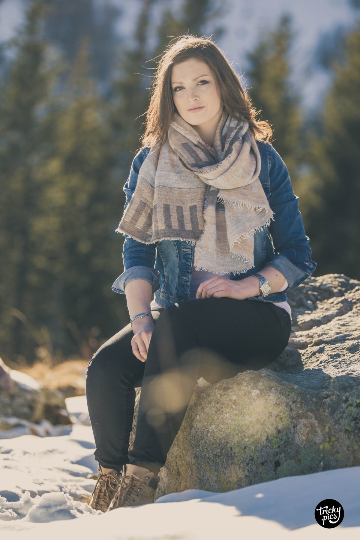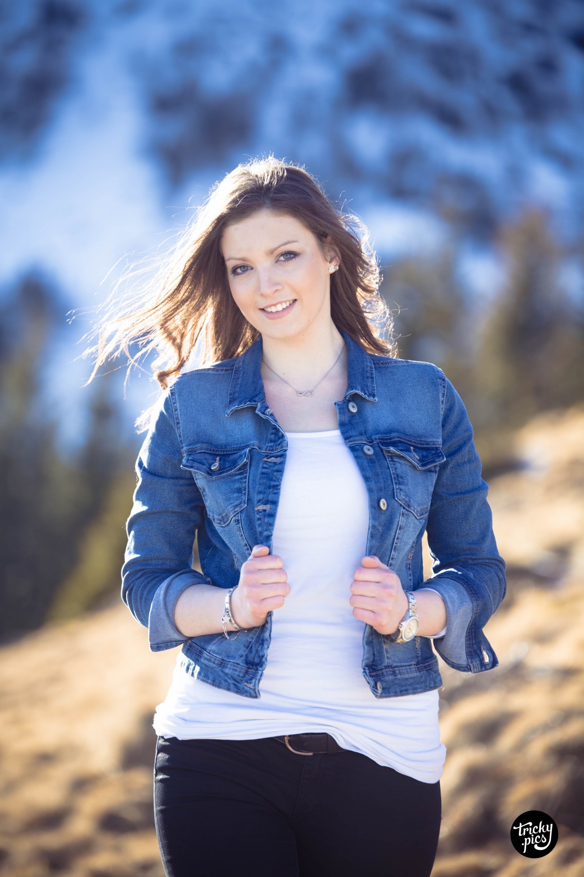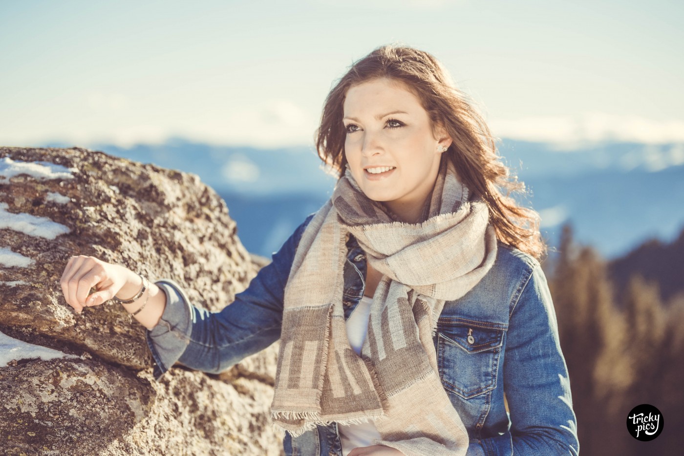 Die Atmosphäre war bei den frühlingshaften Temperaturen äußerst angenehm, nur der Wind störte von Zeit zu Zeit. Aber auch aus dieser Not konnte ich eine Tugend machen, und den Wind als Stilmittel einsetzen. In Sachen Outfits wurde wenig variiert, lediglich die Jacke tauschte Steffi zwischenzeitlich. Auch in Sachen Kameraequient beschränkte ich mich auf mein Tamron 70-200 Tele, das die Lichtstimmung der langsam untergehenden Sonne optimal einfing. Das Outcome des Shootings war (trotz weniger Variationen) jede Menge unterschiedliche Bilder in einer ganz besonderen Gebirgskulisse.