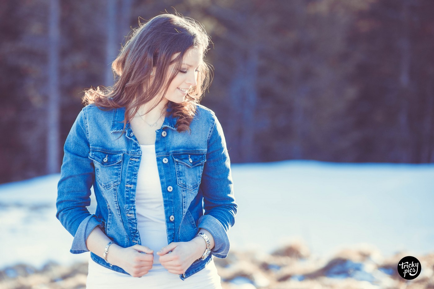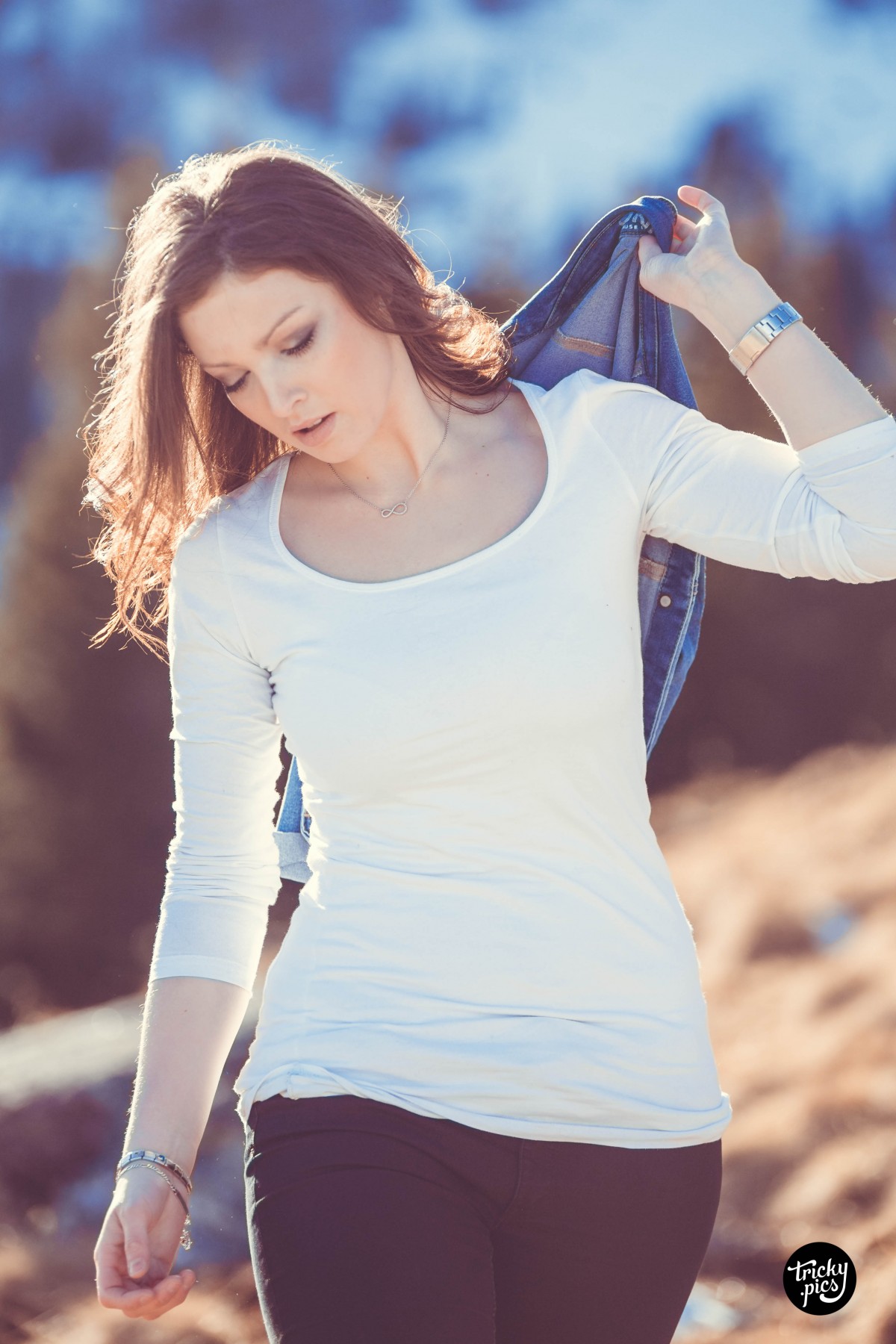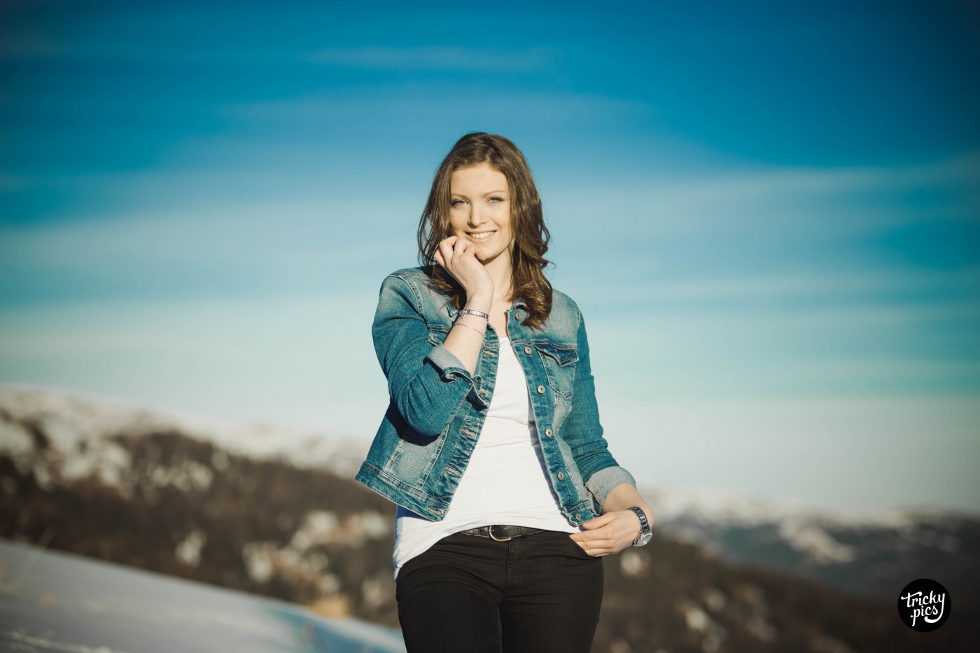 Die Atmosphäre war bei den frühlingshaften Temperaturen äußerst angenehm, nur der Wind störte von Zeit zu Zeit. Aber auch aus dieser Not konnte ich eine Tugend machen, und den Wind als Stilmittel einsetzen. In Sachen Outfits wurde wenig variiert, lediglich die Jacke tauschte Steffi zwischenzeitlich. Auch in Sachen Kameraequient beschränkte ich mich auf mein Tamron 70-200 Tele, das die Lichtstimmung der langsam untergehenden Sonne optimal einfing. Das Outcome des Shootings war (trotz weniger Variationen) jede Menge unterschiedliche Bilder in einer ganz besonderen Gebirgskulisse.