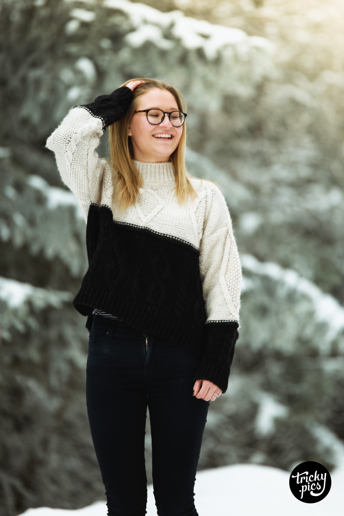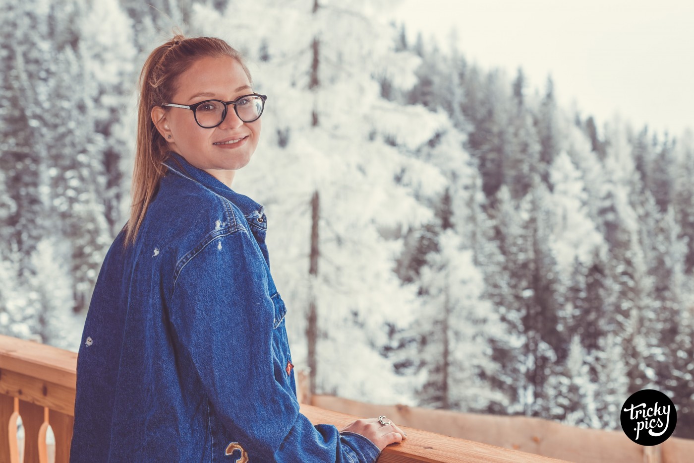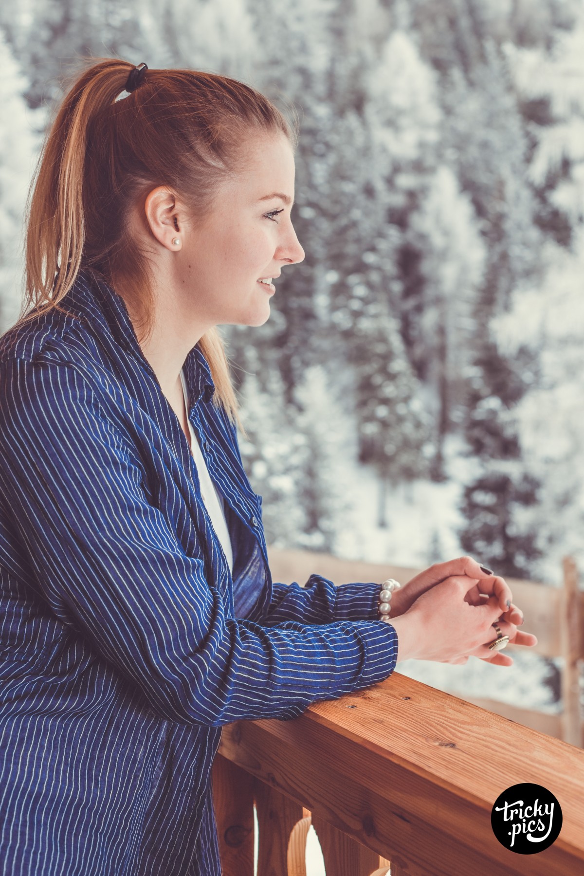 Zwar schaffte ich es mal wieder nicht das passende Schuhwerk für das Shooting auszuwählen und stapfte mit meinen Nike Sneakers immer wieder im Tiefschnee herum, aber für die perfekte Perspektive gibt es eben keine Kompromisse. Abgesehen von meinem Schuhwerk lief das Shooting vollkommen nach Plan. in etwas über einer Stunde shooteten wir in verschiedenen Outfits in unterschiedlichen Locations rund um die Almhütte. Das Ergebnis: Fotos die zeigen, wie der Winter sein sollte. Schneebdeckte Bäume, reines Weiß wohin das Auge reicht und eine Gefühl, das die Kälte an den Füßen vergehen lässt.