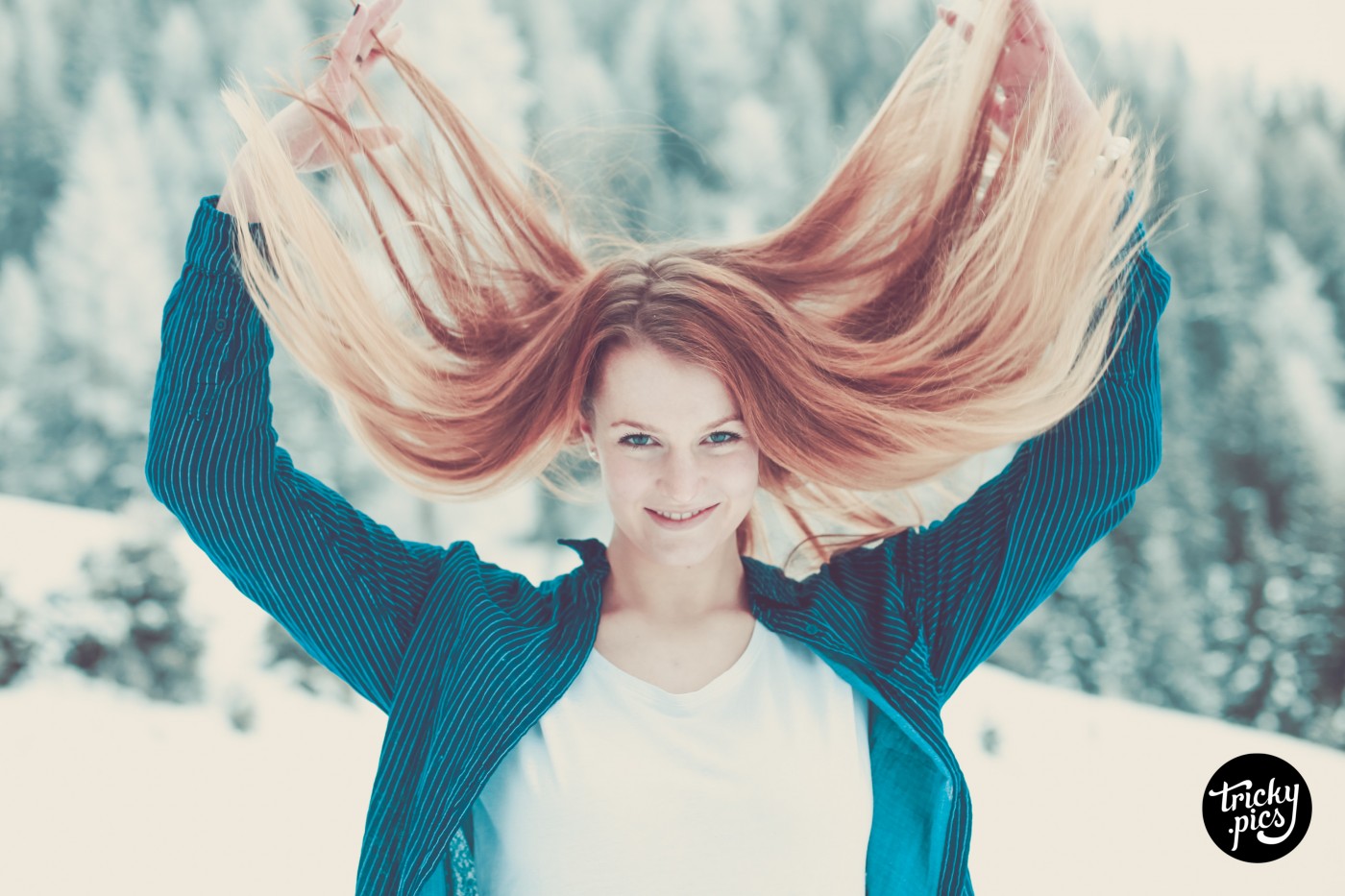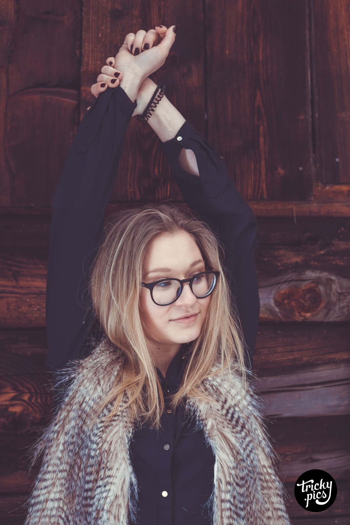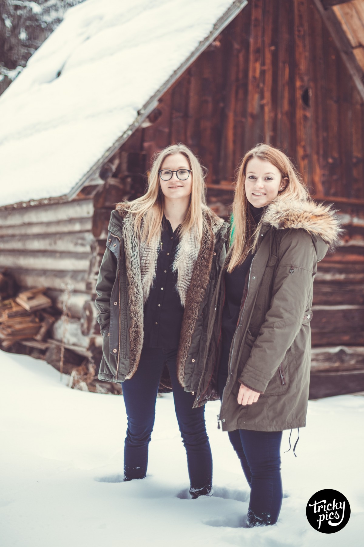 Ich staunte nicht schlecht als mich Jasmin und Theresia beim vereinbarten Treffpunkt zum Shooting mit einem riesigen 4WD Ford Pick-Up Truck abholten. Zugegebenerweise hatte ich auch keine Ahnung wo der Fotospot, den die beiden für das Shooting auserkoren hatten, wirklich liegt. „Eine nette Almhütte“ war ungefähr die einzige Information die ich vorab bekam. Dies reichte mir aber auch, um mir im Kopf ein paar Ideen zurecht zu legen. Es war meine Hoffnung, dass in der Umgebung der Hütte noch Schnee zu finden ist. Als wir dann für einige Kilometer abseits der Straßen auf nichtasphaltierten Waldwegen unterwegs waren, und der Pick-Up ein paar mal trotz 4-Wheel-Drive benahe im Tiefschnee hängen blieb, überraschte mich dann doch. Schlussendlich standen wir in einer vollkommen verschneiten, nahezu perfekten Winterlandschaft vor einem pitoresken Holzferienhaus. Perfekt.