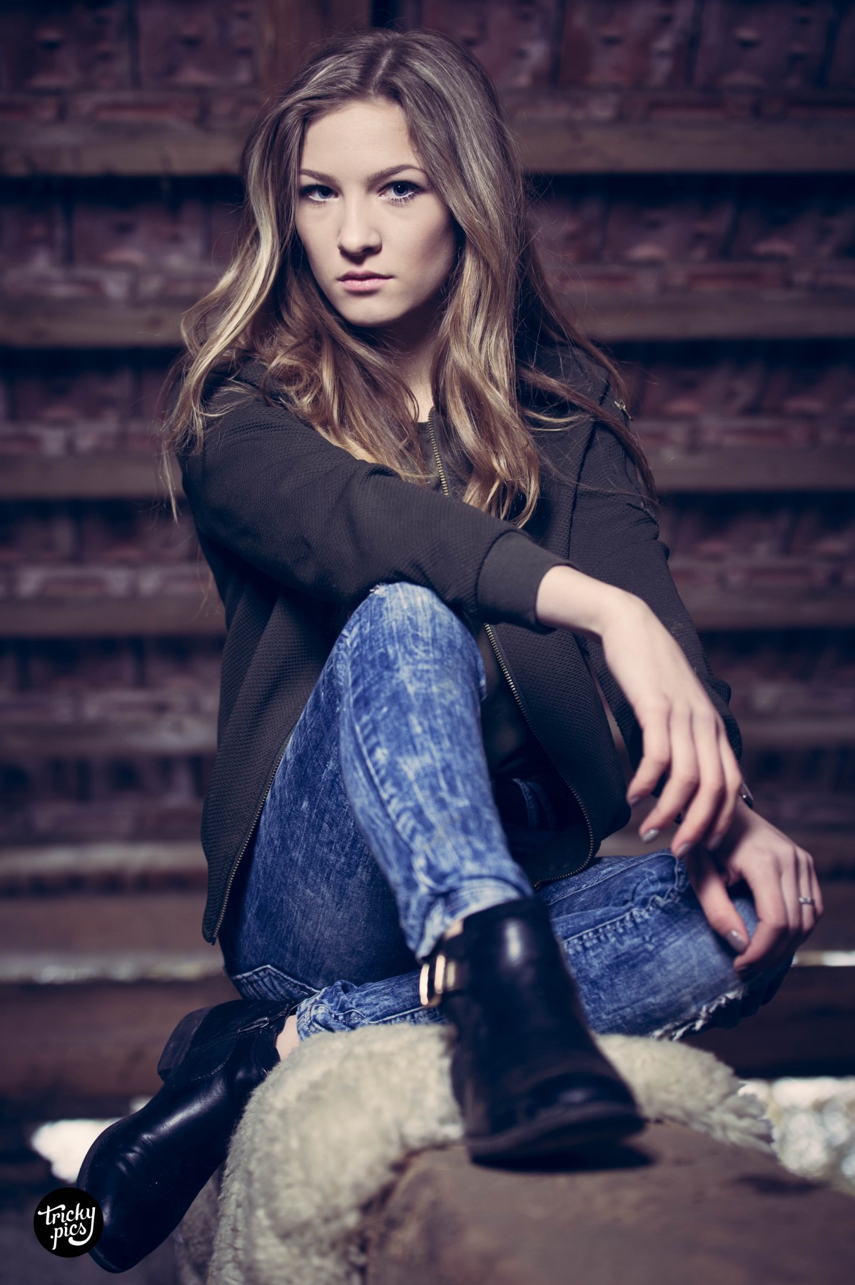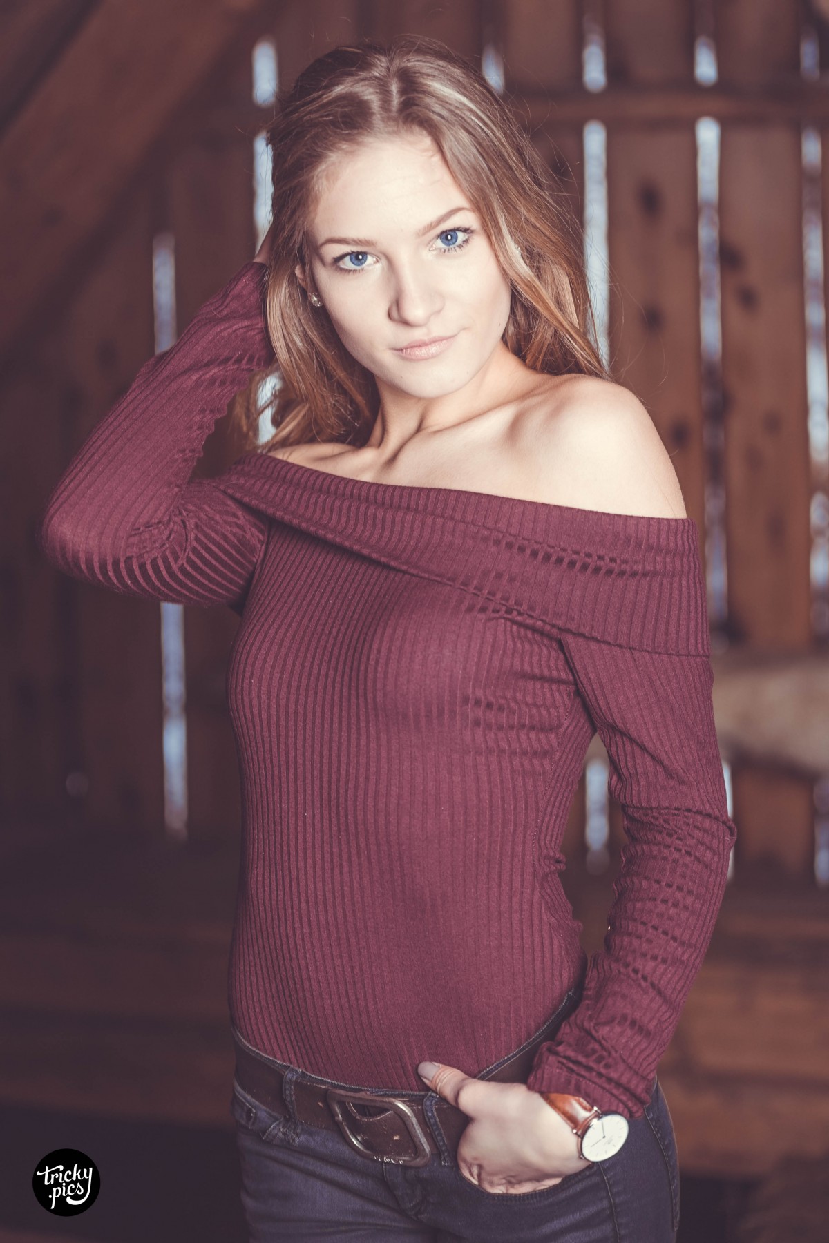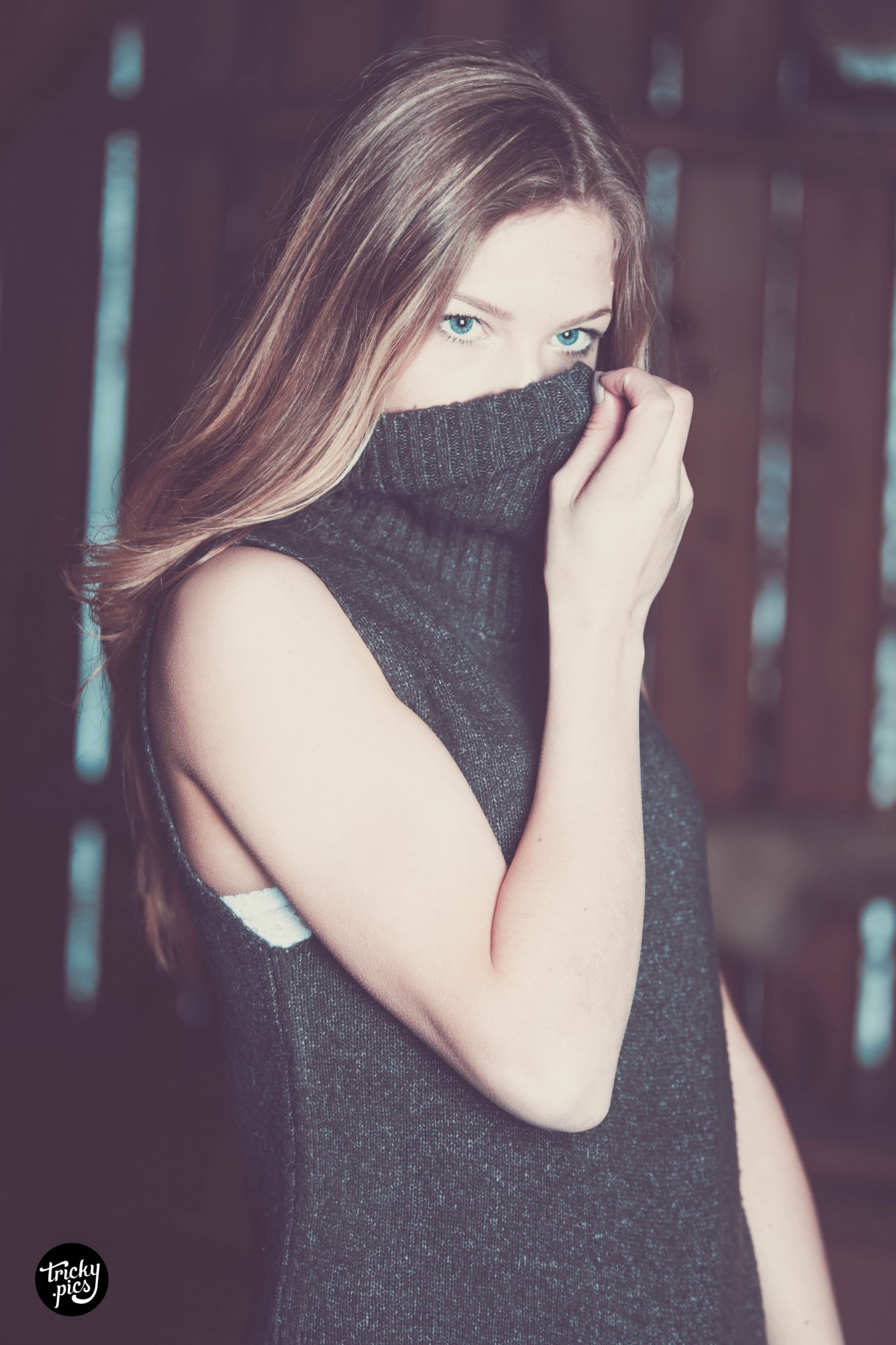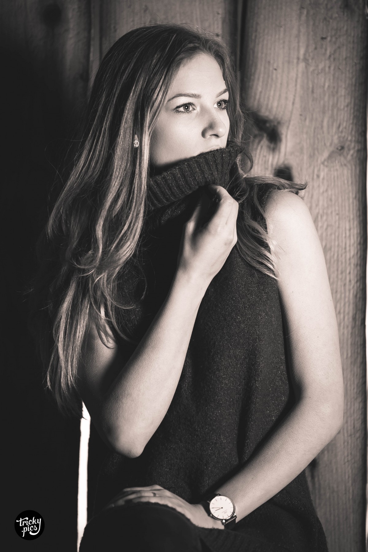 Denn ich wusste einen alten Stall mit Heuboden, der Schutz vor dem Wetter bot, und noch dazu perfekte Hintergründe für Portraitfotos bot. Der Negativpunkt – das wenige Tageslicht – konnte ich durch meinen Studioblitz ersetzen, denn eine Stromanbindung war zum Glück vorhanden. Kein Wind, halbwegs angenehme Temperatur – die Bedingungen waren also wirklich aushaltbar für ein Shooting im Februar. So waren auch die Fotos wirklich schnell im Kasten, was ich auch dem Talent von Julia zu verdanken habe. Beinahe jedes Foto war ein Treffer, was die finale Auswahl wirklich schwierig machte. Zugegeben ein Luxusproblem. Ich möchte euch die besten Bilder natürlich nicht vorenthalten, da die Wirkung der Location absolut zum fotografierten Style passt.