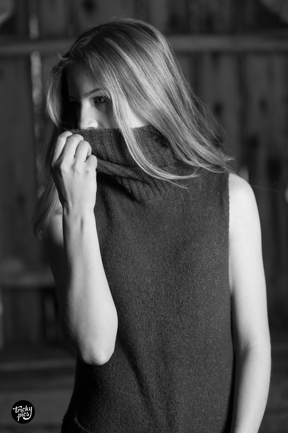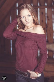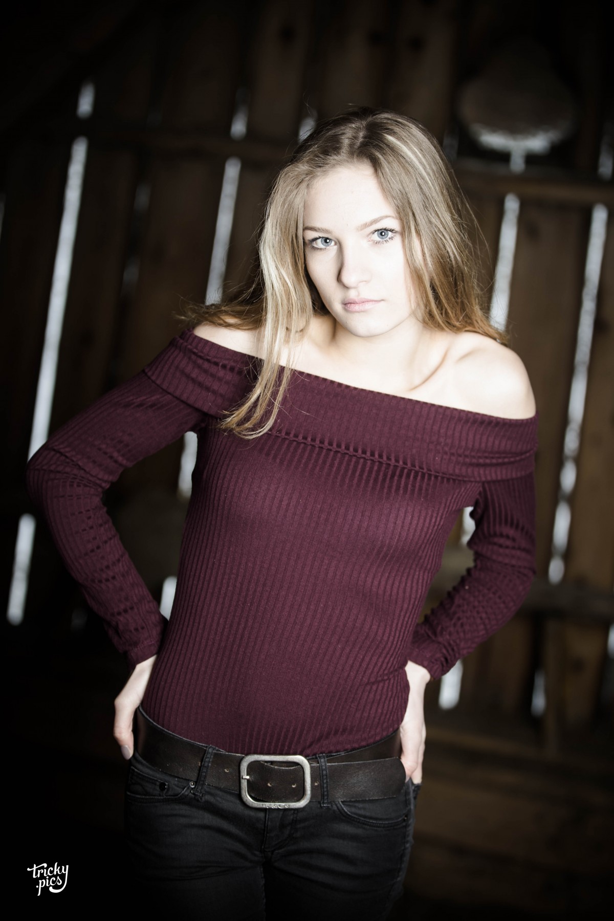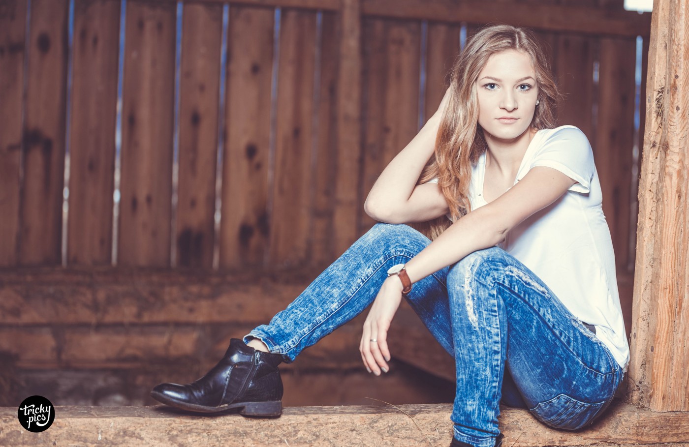 Denn ich wusste einen alten Stall mit Heuboden, der Schutz vor dem Wetter bot, und noch dazu perfekte Hintergründe für Portraitfotos bot. Der Negativpunkt – das wenige Tageslicht – konnte ich durch meinen Studioblitz ersetzen, denn eine Stromanbindung war zum Glück vorhanden. Kein Wind, halbwegs angenehme Temperatur – die Bedingungen waren also wirklich aushaltbar für ein Shooting im Februar. So waren auch die Fotos wirklich schnell im Kasten, was ich auch dem Talent von Julia zu verdanken habe. Beinahe jedes Foto war ein Treffer, was die finale Auswahl wirklich schwierig machte. Zugegeben ein Luxusproblem. Ich möchte euch die besten Bilder natürlich nicht vorenthalten, da die Wirkung der Location absolut zum fotografierten Style passt.